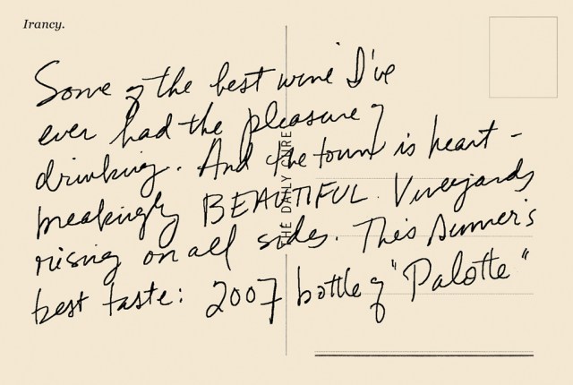 [Some of the best wine I’ve ever had the pleasure of drinking. And the town is heart-breakingly beautiful. Vineyards rising on all sides. This summer’s best taste: 2007 bottle of “Palotte.”]
