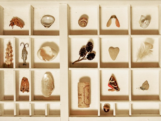 For better or worse, it is my tendency to memorialize things. To build shrines. To try and capture moments or entire passages of time. To hold on. This summer’s project began last year at a vide-grenier. For 4 euros, I bought (what I take to be) an antique typographer’s drawer—a wide shallow affair with a vast array of tiny compartments. I cleaned it. Painted it. This summer, quite without purpose, we began collecting things that caught our eye or seemed to contain the very essence of our time spent here. We realized after several weeks, that we had a place to store them, so we began laying them, one by one, into the freshly painted drawer. I’ll hang this somewhere when the filling of it is complete, and keep this amazing summer with me as long as wood and fishing lure, butterfly’s wing and swallow’s egg will endure.
