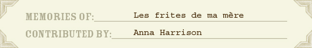 My mother also made wonderful frites, or chips, as we call them. Thanks for the reminder. I just can’t make them as well as she did.