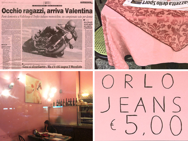 The best thing about Milanese pink is that it’s not just for girls. Its usage is either too dignified or too funky or, pardon the color metaphor, simply too “out of the blue” to be considered strictly a feminine indicator. Take for example the ubiquitous sports daily Gazzetta dello Sport. It’s been pink forever. In fact, it’s nicknamed “La Rosa,” and it proudly bears the tagline Tutto il rosa della vita (literally, “all the pink in life,” but meaning “all the good things in life”). You don’t see men shunning it because of its color. Quite the opposite.
