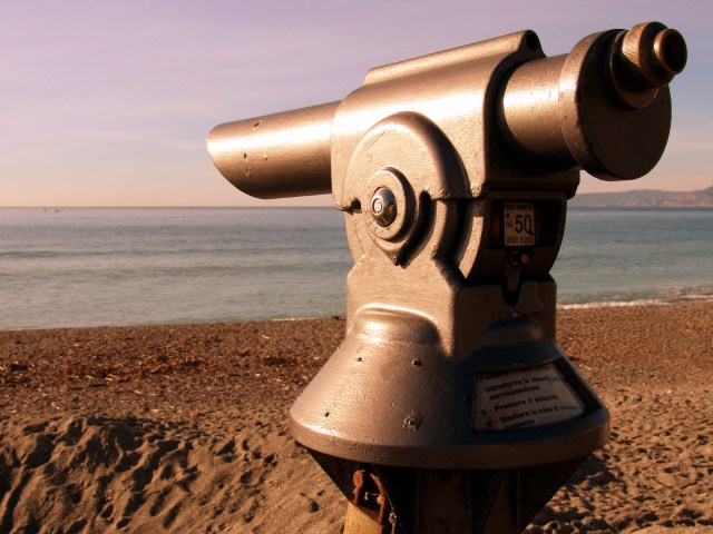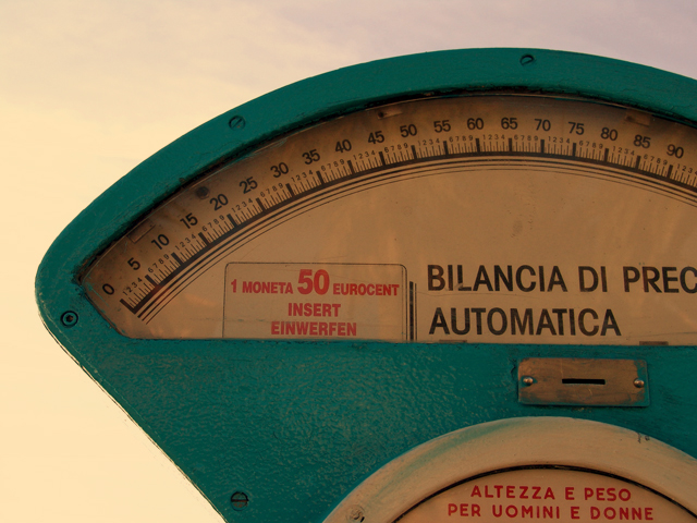 We walk arm in arm down the bricked boardwalk above the beach and the lazy tide. We toss a 50-cent piece in the binoculars and look west toward the marina then straight out at the horizon where a bird dives for a silver fish. We feed another machine—against our better judgment but just for the fun of it—that tells us how much we weigh. And whether or not the results are accurate, we laugh, because here, now, we know it doesn’t matter. It doesn’t matter at all. (Besides, for those of us used to pounds, it all looks so harmless in kilos.)