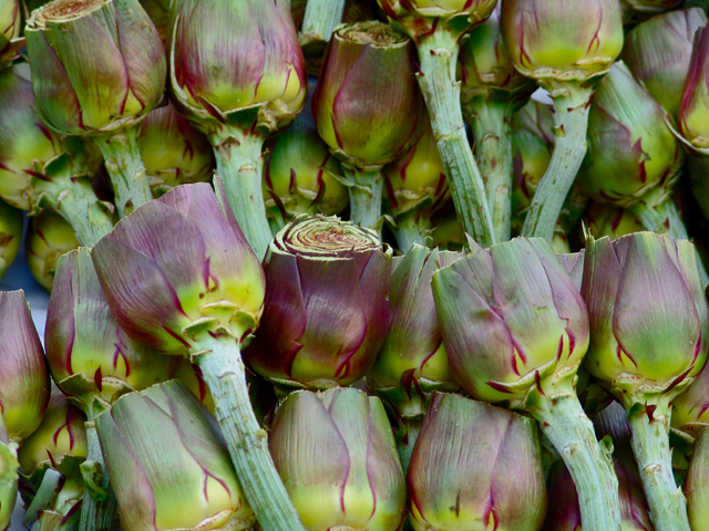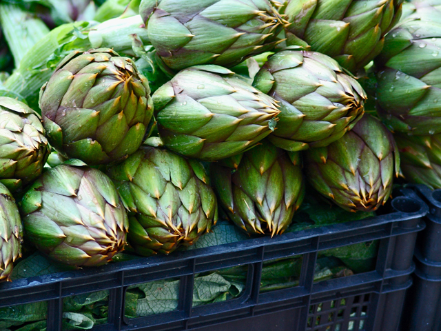 I once bought a bouquet of those small, already cleaned artichokes and asked the stall owner how to prepare them. His reply: “I have no idea – try them raw!” (eye-rolling) I think I’ll have to keep asking.