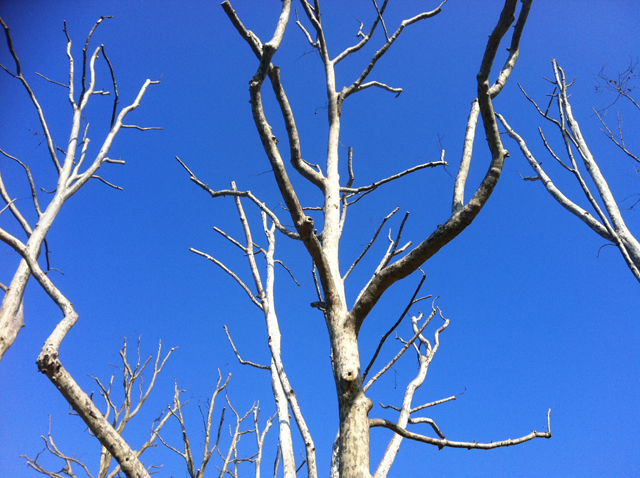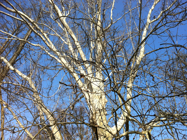 These are all sycamores—platani, in Italian. My favorite. I love their mottled, army-camouflage trunks and their white, bleached-bone branches. Trimmed like this, they have a post-apocolyptic look, but I adore it. They are unburdened by dead dry growth, ready for new. Lanky, angular and awkward like teenagers. All future. No past.