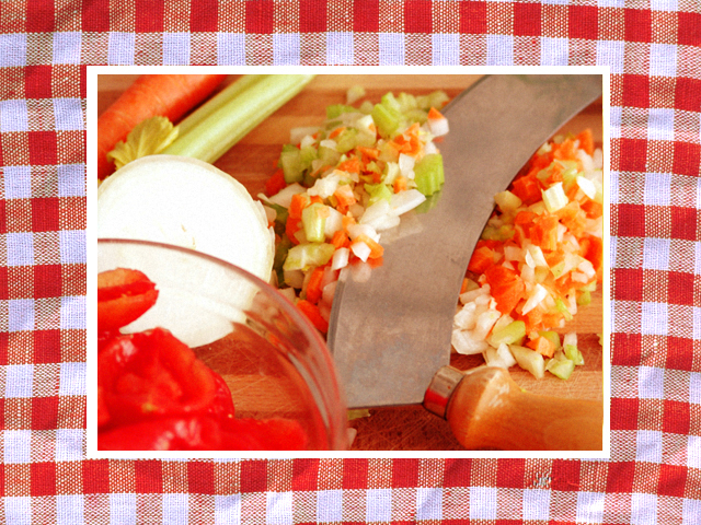 I know a country housewife who, not wanting to take the time, makes her own version of salsa di pomodoro as follows: She takes ripe tomatoes, barely sautés them in olive oil, adds a pinch of salt and a couple leaves of basil, and tosses her freshly cooked pasta in this rustic concoction. It is divine. But I’d like to share with you here what I take to be a fairly classic recipe for the traditional sauce. It is printed in Il libro di cucina (you have to love that title: The Cook Book), published in 1969 by l’Istituto Geografico de Agostini. If you ever see a copy of it on the street in Italy, buy it. It explains everything.)