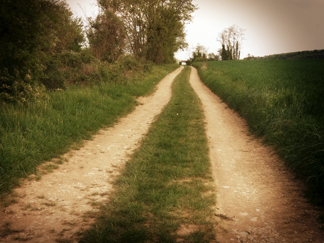 Ahead of us and behind us, the reason for our outing: Two parallel paths, two dirt ruts– the doing of the farmer’s tractor. Impossible not to heed their call. Impossible not to put down computers, books, all those things that make us busy and occupied, and instead pick up the leash and call the dog. Our legs were made for walking, and this is our chance. Two dirt ruts. Side by side and forever parallel. One for me, one for you. Are you coming? Say, “Yes.” If poems speak the truth, it will make all the difference.