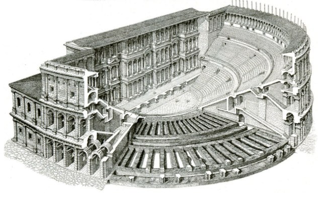 Augustus, the first emperor of the Roman Empire, in his effort to render Milan a beautiful and effective anchor-city with a series of infrastructural and architectural endeavors, had a theater built in its center. He believed strongly in theatrical entertainment as a means of spreading Roman culture and thought, so the theater was free to all. This theater held 7,000 spectators, almost half of the population of the ancient city of Milan, or Mediolanum, as it was called at the time. Theatrical productions often lasted entire days, so audiences overheated by the delight of comedies, tragedies and pantomimes had the opportunity to exit intermittently into an enormous columned arcade, where they could get fresh air, drink wine, or indulge in the food of the day—sheltered, if necessary, from inclement weather or free to roam the green.