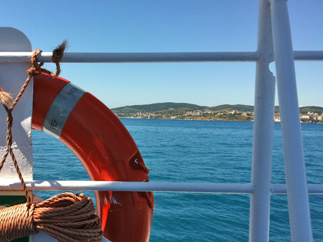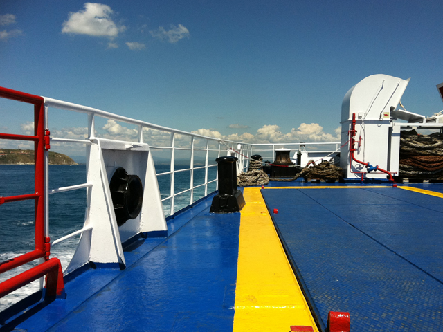 A ferry is a beautiful thing. A clean break from all that’s been weighing you down. The start of something that must surely have a whiff of adventure about it. That water you cross, it’s the great divide. Between stress and relaxation. Between life as usual and life as unusual. Water water water, oh water. Blue. Spraying. Foaming. Shifting. Carry us away! Carry us away!
