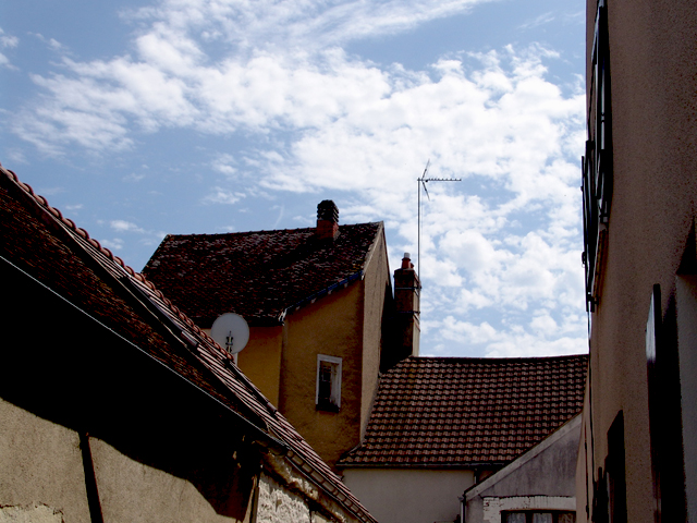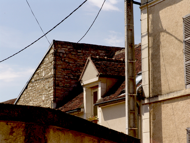 Whenever you find yourself in a foreign country, it is the things that are completely normal (so normal as to be invisible) to the natives that are, to you, the hallmarks of Wonderland. I’ve walked through the streets of this tiny Burgundy town for 13 years now, and I’ve never grown tired of staring at the rooftops. Their irregular and unpredictable angles. The way they stack up against the sky like the elements of a cubist painting. The lean of things that once were plumb (or maybe never were).