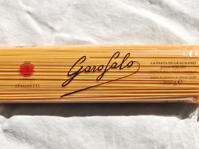 Rummo’s seriousness appeals to me. But I have to applaud the well-placed wit of Garofalo: Instead of printing a bland cooking time on the Italian package, they suggest the number of minutes required for ‘a figliata, which more or less means “birth.” Spaghetti and its extended family aren’t cooked, my friends. They are brought to light. Born. Given life. And in turn, they do the same for us. One fork-full at a time.