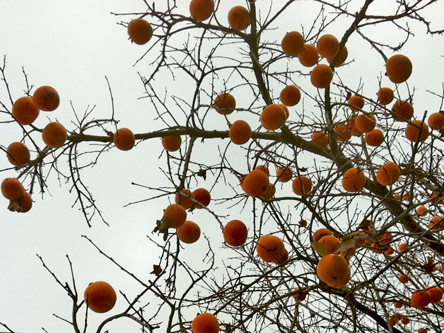 I’m eating two persimmons right now! I’ve never seen them on a tree before, though, really amazing.