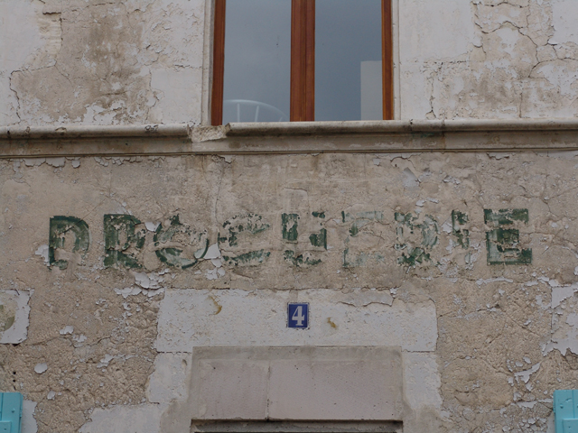 These old French villages are full of ghosts. But my favorites are those that haunt the walls. Signs (literally) of things past. Hotels. Dairy shops. Jewelry and watch shops. Bakeries long gone or relocated. Typography is a passion of mine, and as spectacular as it is in many of its digital iterations, there is nothing that compares with these hand-painted beauties. I wonder who decided what font to use? I wonder who chose the colors? I wonder what hand painted them so steadily? Layers and layers of time, peeling away, fading before our eyes, some lingering a little longer as reminders of something that came long before us.