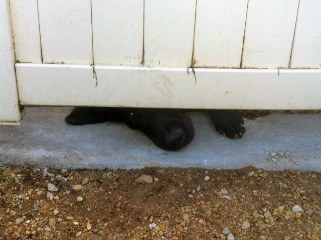 LOVE this! We have a neighbor who cut out a square in their fence just at their dog’s height. Nothing like walking along the path to see a whole HEAD sticking out!