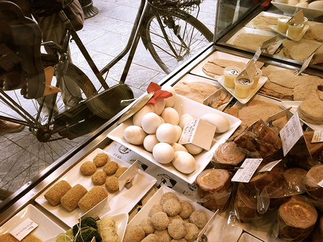 They were nestled comfortably in the window of my favorite butcher shop, Macelleria Walter Sirtori in Via Paolo Sarpi. The place is a working museum of food culture, a monument to old-fashioned, made-to-order service, and a mecca for the urban soul in search of the genuine, the real. Hence, the basket of large eggs, front and center adorned with a red ribbon and drawing a crowd. As the cashier explained to me, “We only have goose eggs when we have them.” Ah, I see. Naturally.