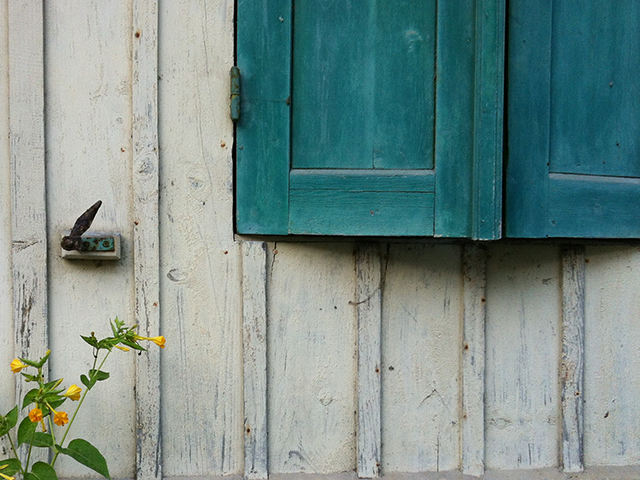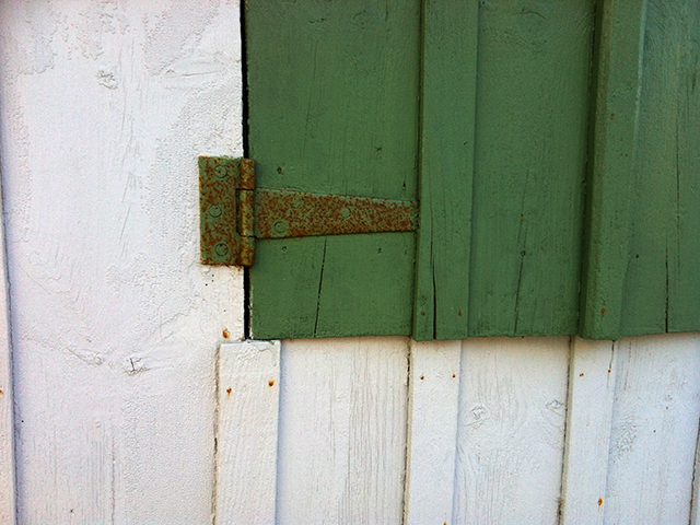 Your photographs are beautiful. The green shutters, partially closed, remind me of hot summer days when, after lunch, it was siesta time – not necessarily when one took a nap, but when it was too hot to let any sun creep indoors, and so you almost completely closed the shutters, just letting in a little bit of outside light so you still knew it was daytime. At the night the shutters are always closed, sheltering everyone and everything within, and allowing you to gradually wake up in the morning – not necessarily at first light but when you feel like letting in the day by opening them again, letting everyone outside know that yes, you are awake and ready to greet the world, you are open for business.