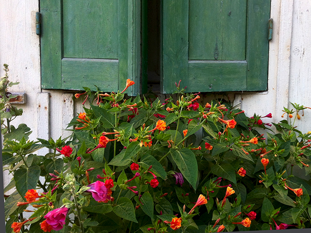 [It’s interesting to compare this graphic freedom to the restraint of Bourgogne. Here in my first post, more shutters, but in a controlled color palette. “The Importance of Blue.”]