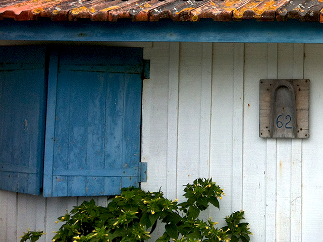 A walk around Cap Ferret is a tour through color, all of it showing off like a group of giddy starlets against a beautifully dull backdrop of sand, weathered wood, and the ebbing and flowing tide. Factor in a frequently grey and overcast sky, and you get the picture. The colors, at their most beautiful, are those splashed on the fishermen’s cabins that line the Bay. I always wonder what inspires people to choose the colors they do. How they settle on the shade they want to frame their view of the world until the sea air fades it down to a weak coating of “barely there.”