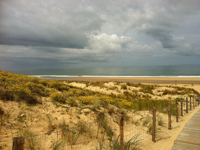 I don’t know about you, but I find nonstop, sunny weather vaguely boring. My upsy-downsy tendencies need a touch of pathetic fallacy every now and then. Fog! Rain! Elements that howl! Nothing like a good grey, blustery day to set the mood straight, blow out the cobwebs and drive away the headache. Life just isn’t blue-skied 24/7, so isn’t it suitable that our climactic wallpaper reflect that fact? But I’m curious. How do you feel about it? Using the beautiful Atlantic Coast of the Arcachon peninsula as your subject, tell me, which do you prefer?