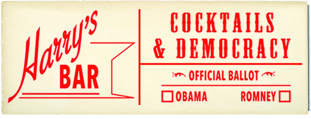 I thought it would be fun to conduct our own straw poll here. This isn’t Harry’s Bar and I don’t have a liquor license, but all things being possible in the virtual world, let’s take a stab at it. You can be political with cocktail in hand. Only political. Or only cocktailish. Take your pick, and let’s see what happens! A tout à l’heure. And may the best man win.