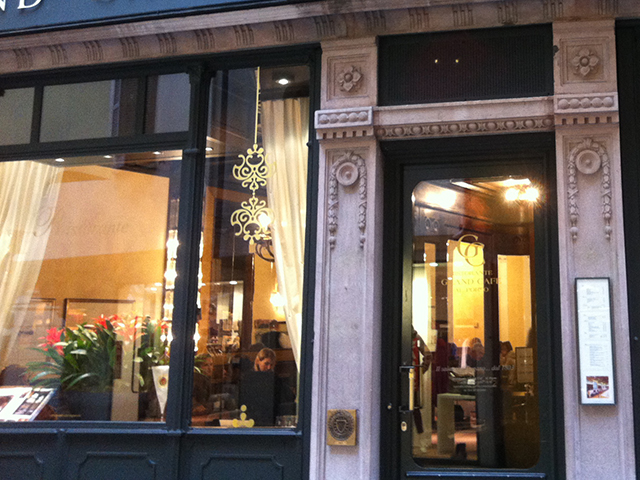 Meanwhile, here, you can take your large or small Best Friend with you to your favorite haunts as long as he or she is behaved at least as well as you are. Yesterday, for example, at the lovely tea room, Ristorante Grand Café al Porto, in Lugano, Switzerland—tucked into our lovely nook with a hot chocolate dense enough to hold a footprint—we noticed the following printed announcement on our table: