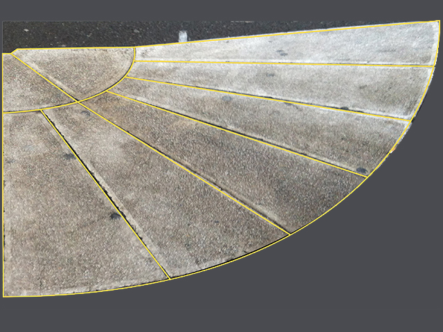 So. Here’s what I saw, followed by what it became, more or less step by step. There’s also a half-fan version in my drawing folder, based on the original half-ramp rendering you see below, where the shape lies in layers like wings or feathers. Very nice, but maybe for another day:
