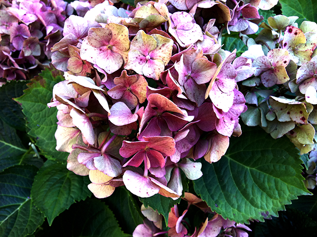 My memories of hydrangea go way back. When I was small, we had blue ones in our yard on Signal Mountain, Tennessee. An almost impossible blue. (I think even then someone explained to me that the color had to do with the minerals in the soil. I wonder if that’s true. Do you know?) These hydrangeas, abundant and benignly neglected, helped form the barrier between us and the family with “too many children and too many dogs”— the kind of family that spilled out of their own house.