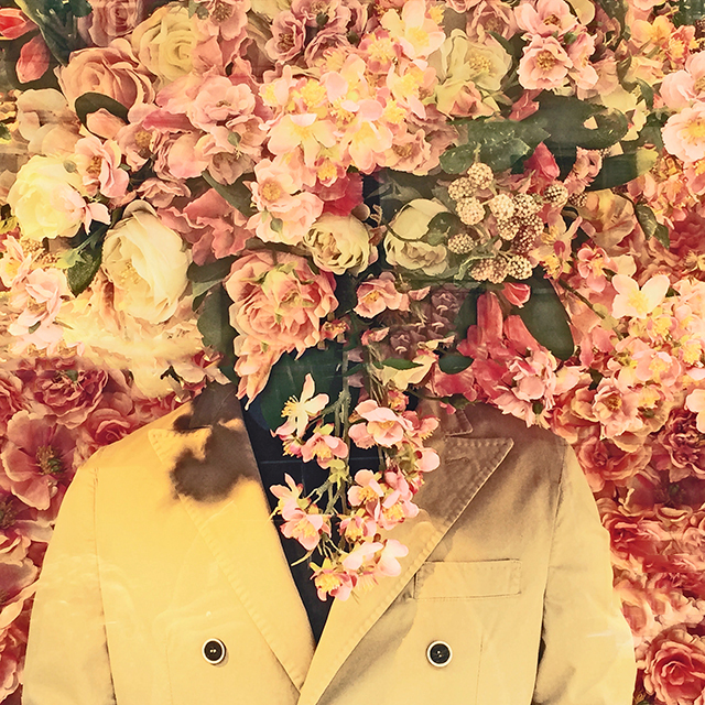 A little more than a year ago, I posted about the Spring colors of last year, featuring a piece of art, a “Flowerhead,” by Olaf Hajek. This year, as if Hajek’s fantastical visions were coming true, real flowerheads were recently spotted in a nearby shop window.