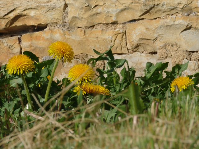 Pissenlit the flower is called in French. Or, similar to English and Italian, dent-de-lion. Nothing in the flowering weed category could be more banal, yet these ubiquitous yellow buttons pack an emotional punch with me, when I see them growing there next to the stone wall and think of her picking them as a child and eating their leaves for dinner.