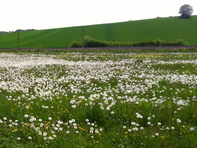 I don’t see a dandelion today that doesn’t remind me of her. Of her war. Of her life here during those difficult years. Her memories have somehow become ours, inseminating themselves in our minds, so that we don’t forget something we didn’t live through, if such a thing is possible. One memory multiplying itself over the generations, like the flower itself. This Easter, the otherwise green fields were full, already, of the white wispy leftovers that dotted them like a healthy cotton crop. Millions this year. How many million more, next year?